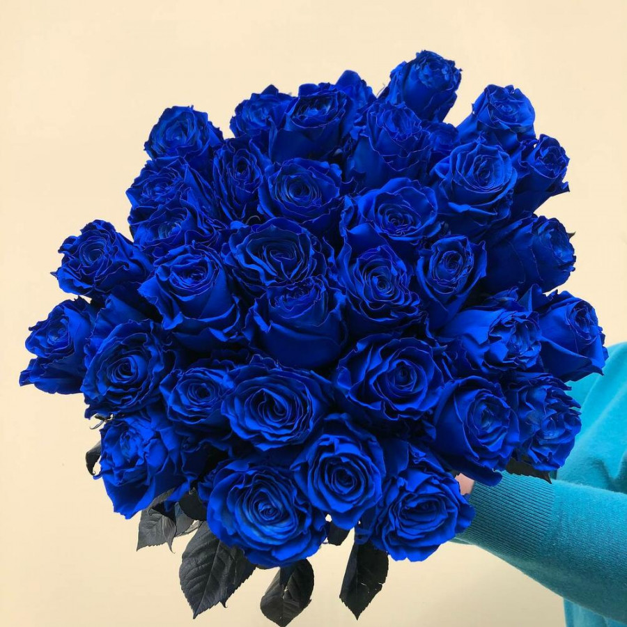 Монобукет из 31 синей розы «Ультрамарин» в Горбатове